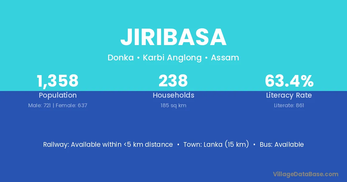 Lanka (15 km) is the nearest town to Jiribasa village for major economic activities and is located approximately 15 km away.