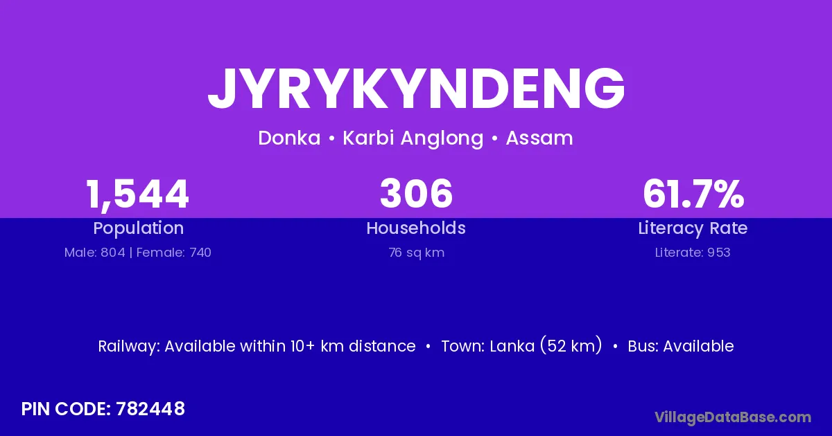 Jyrykyndeng village has a total population of 1,544 people, of which 804 are males and 740 are females.