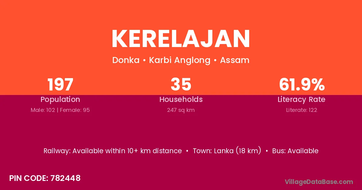 Lanka (18 km) is the nearest town to Kerelajan village for major economic activities and is located approximately 18 km away.