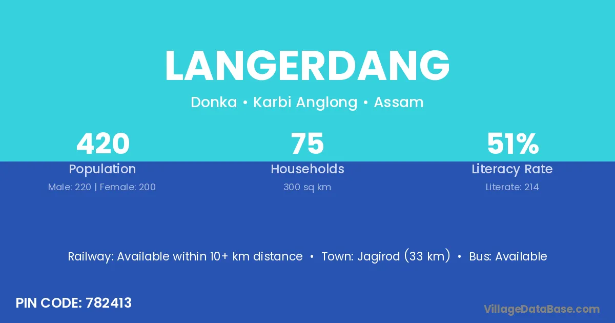 Langerdang village has a total population of 420 people, of which 220 are males and 200 are females.