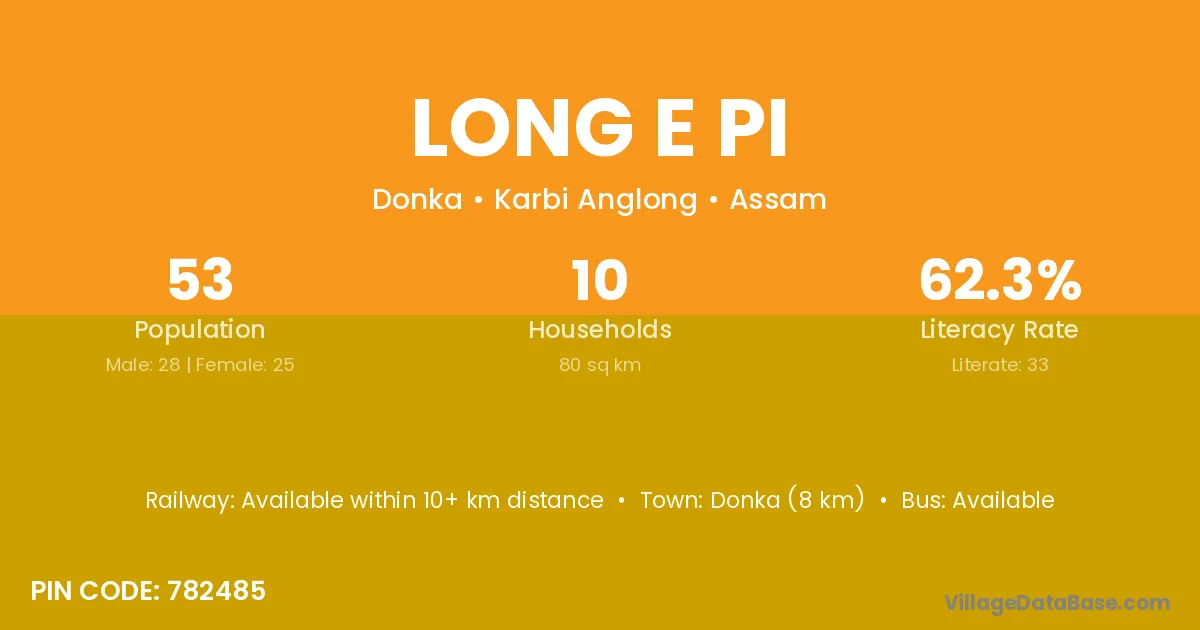 Long E Pi village is located in the Donka Subdivision of the Karbi Anglong district in Assam .