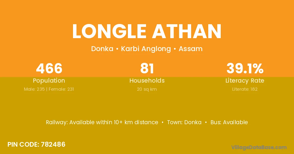 Longle Athan village has a total population of 466 people, of which 235 are males and 231 are females.