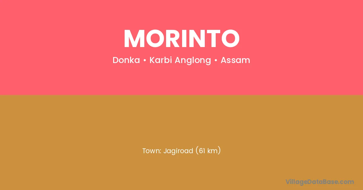 Jagiroad (61 km) is the nearest town to Morinto village for major economic activities and is located approximately 61 km away.
