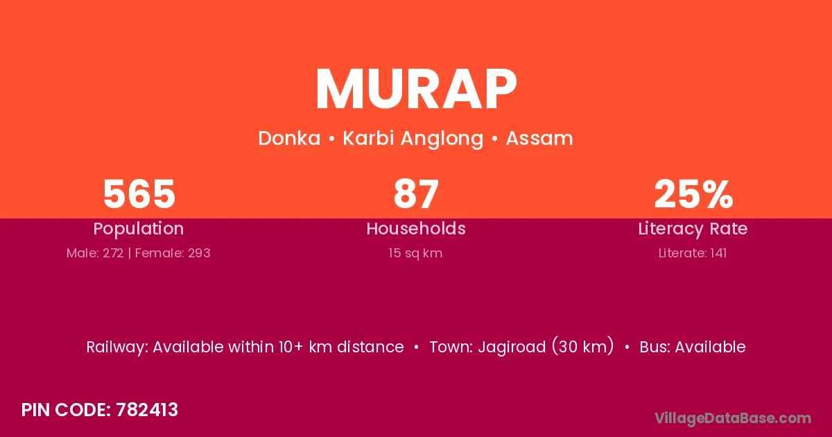Jagiroad (30 km) is the nearest town to Murap village for major economic activities and is located approximately 30 km away.