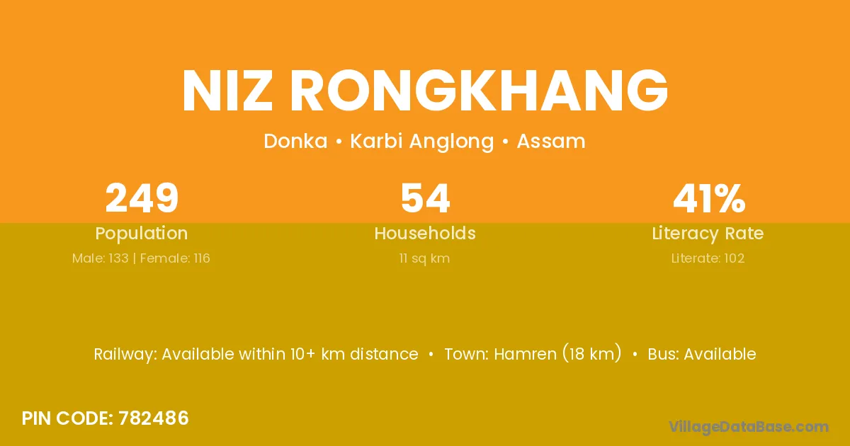 Niz Rongkhang village has a total population of 249 people, of which 133 are males and 116 are females.