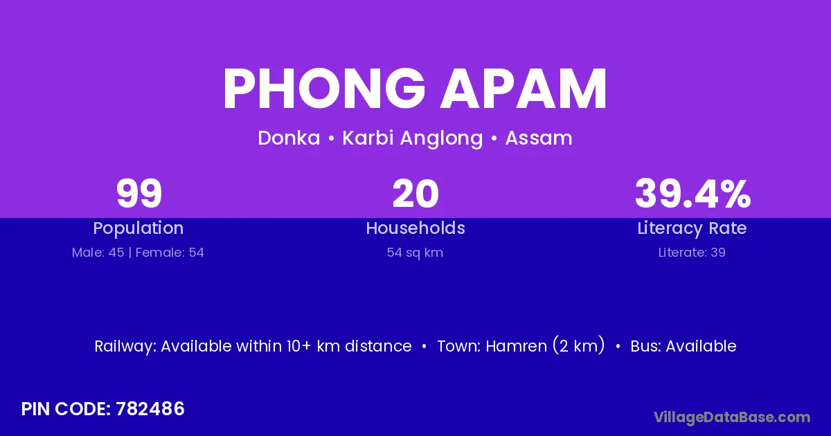 Phong Apam village is located in the Donka Subdivision of the Karbi Anglong district in Assam .