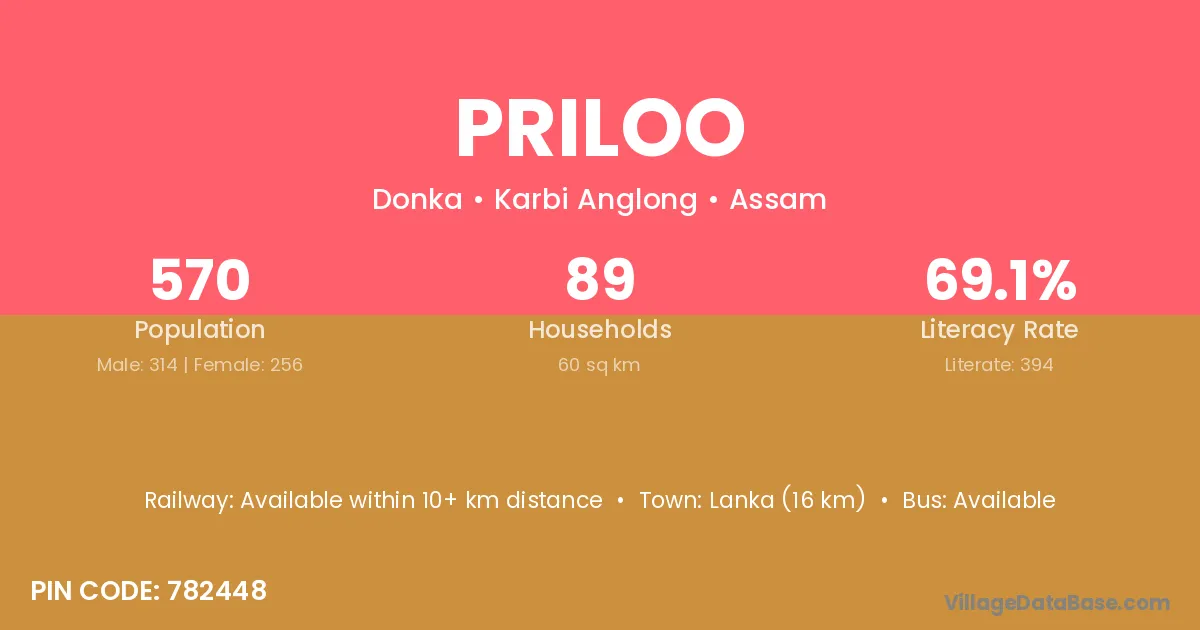 Priloo village is located in the Donka Subdivision of the Karbi Anglong district in Assam .