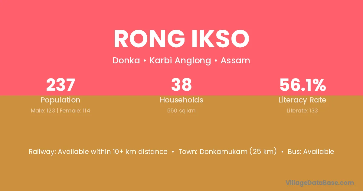Rong Ikso village has a total population of 237 people, of which 123 are males and 114 are females.
