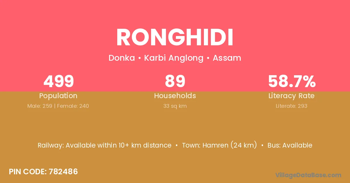 Ronghidi village is located in the Donka Subdivision of the Karbi Anglong district in Assam .