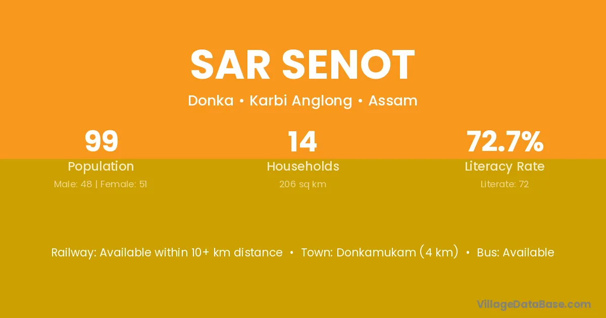 Sar Senot village is located in the Donka Subdivision of the Karbi Anglong district in Assam .