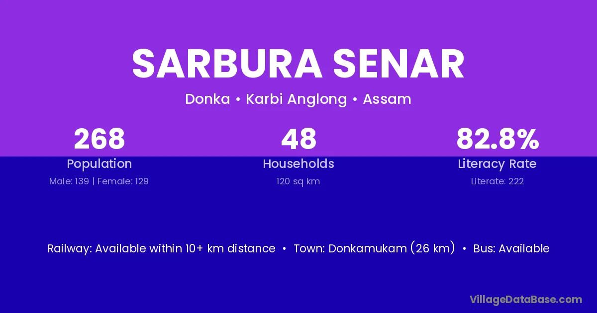 Sarbura Senar village is located in the Donka Subdivision of the Karbi Anglong district in Assam .