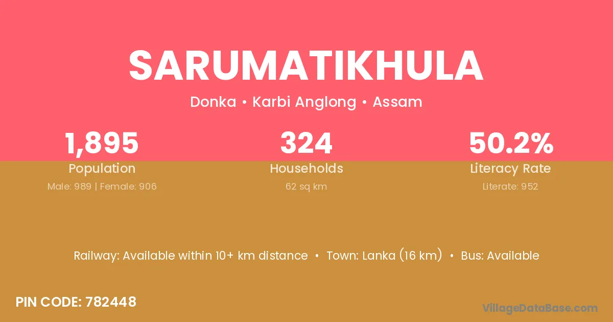 Sarumatikhula village is located in the Donka Subdivision of the Karbi Anglong district in Assam .