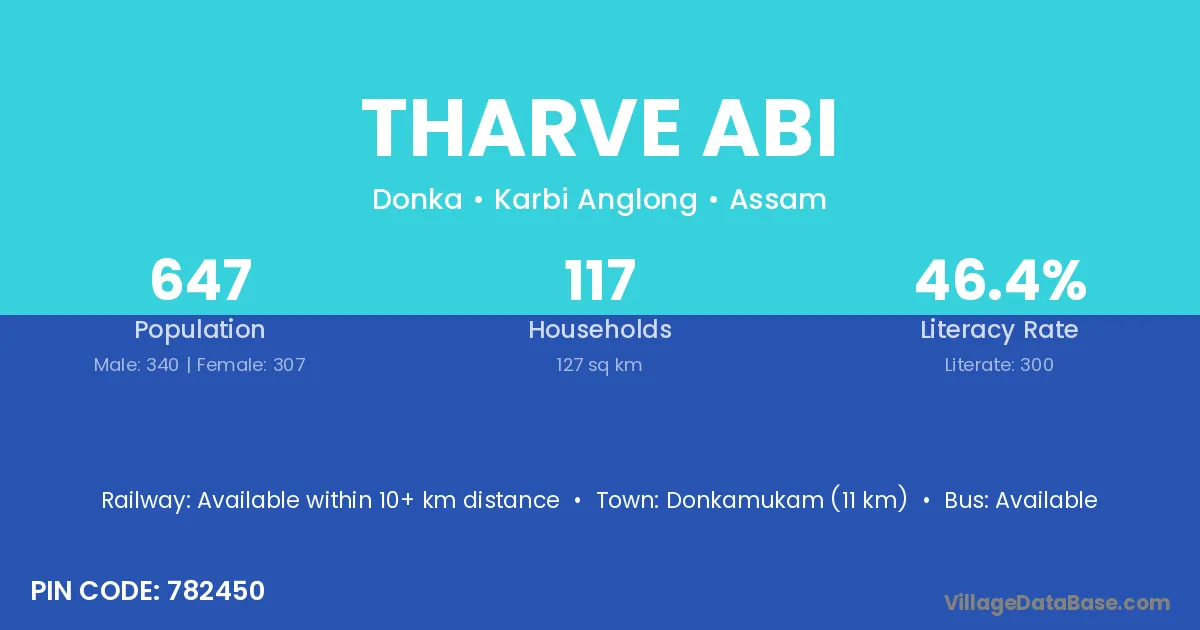 Donkamukam (11 km) is the nearest town to Tharve Abi village for major economic activities and is located approximately 11 km away.