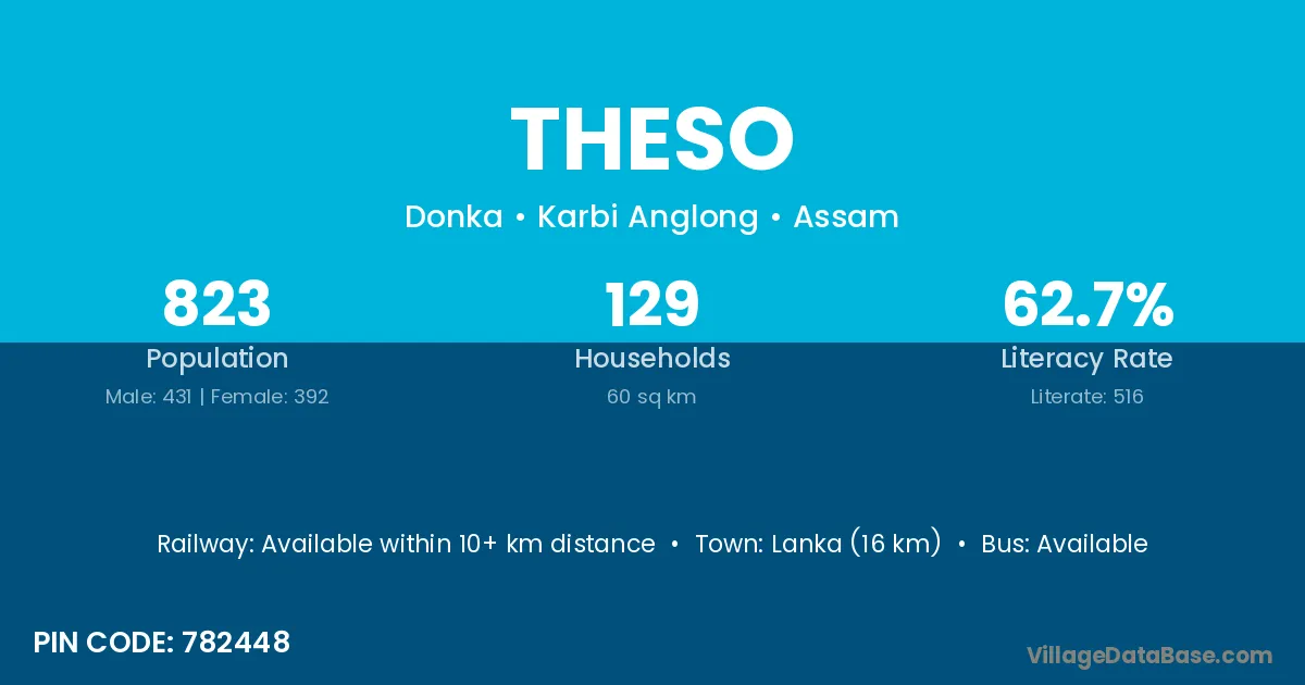 Lanka (16 km) is the nearest town to Theso village for major economic activities and is located approximately 16 km away.
