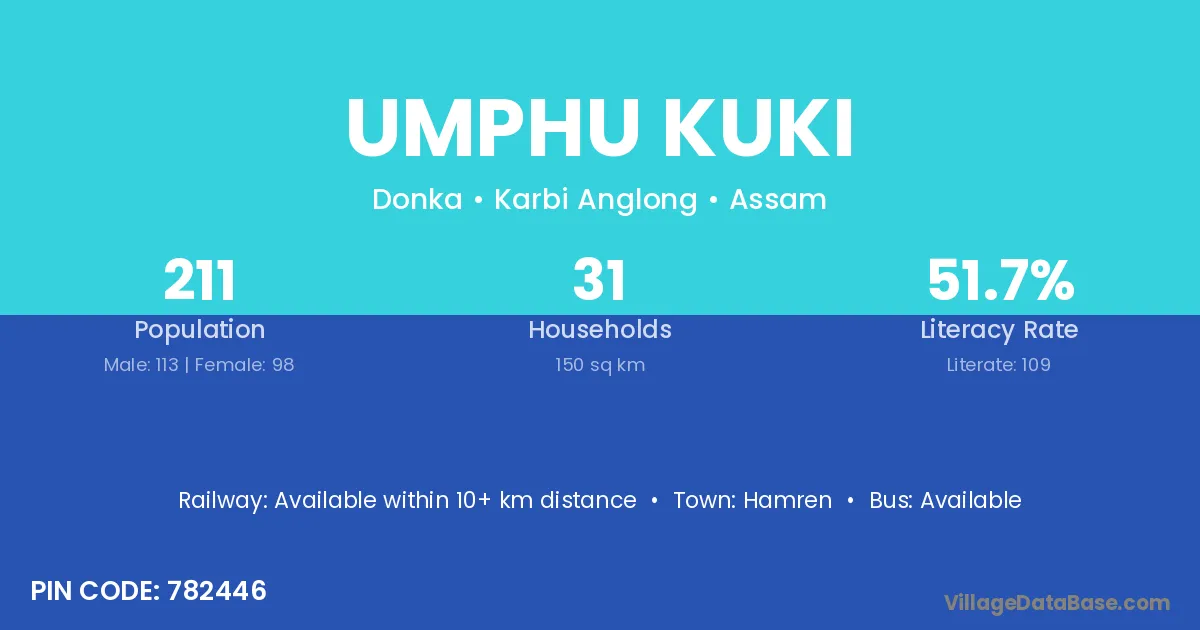 Umphu Kuki village has a total population of 211 people, of which 113 are males and 98 are females.