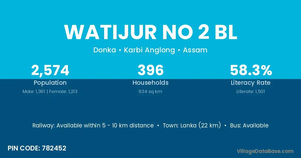 Lanka (22 km) is the nearest town to Watijur No 2 Bl village for major economic activities and is located approximately 22 km away.