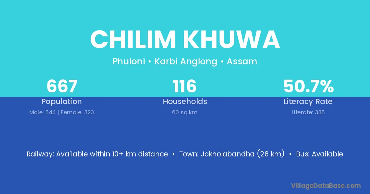 Chilim Khuwa village has a total population of 667 people, of which 344 are males and 323 are females.