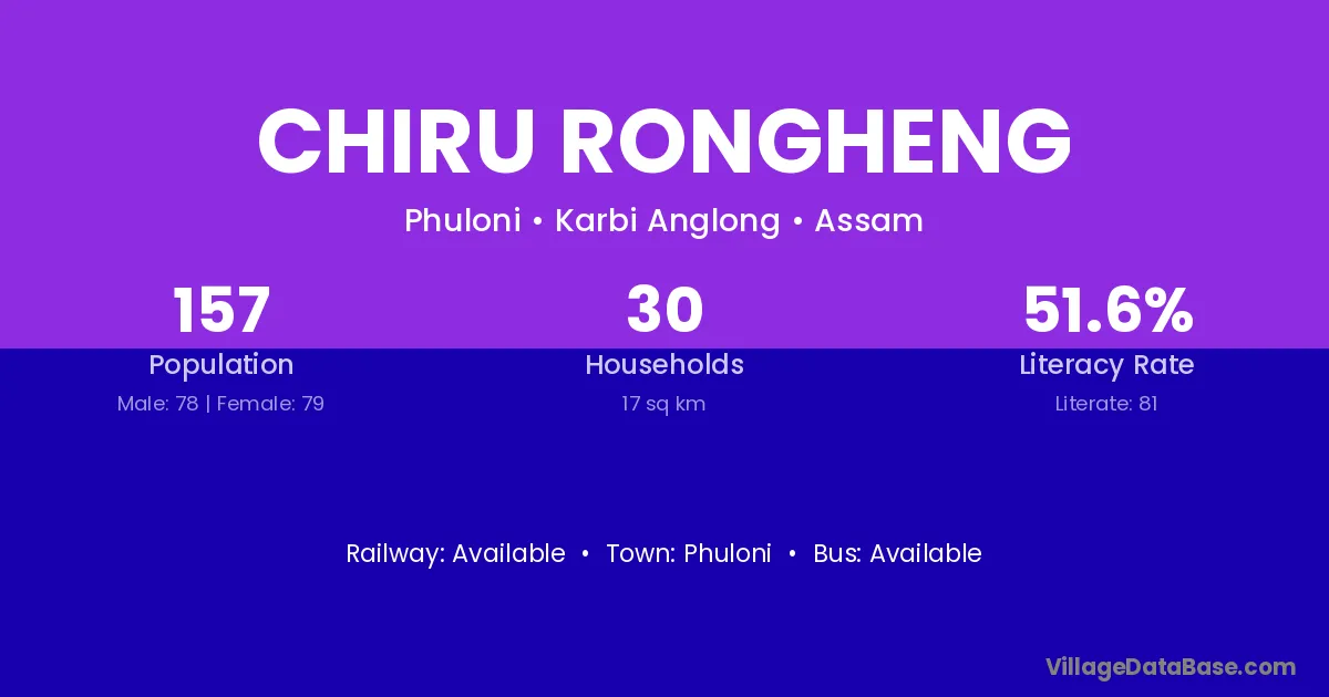 Chiru Rongheng village has a total population of 157 people, of which 78 are males and 79 are females.