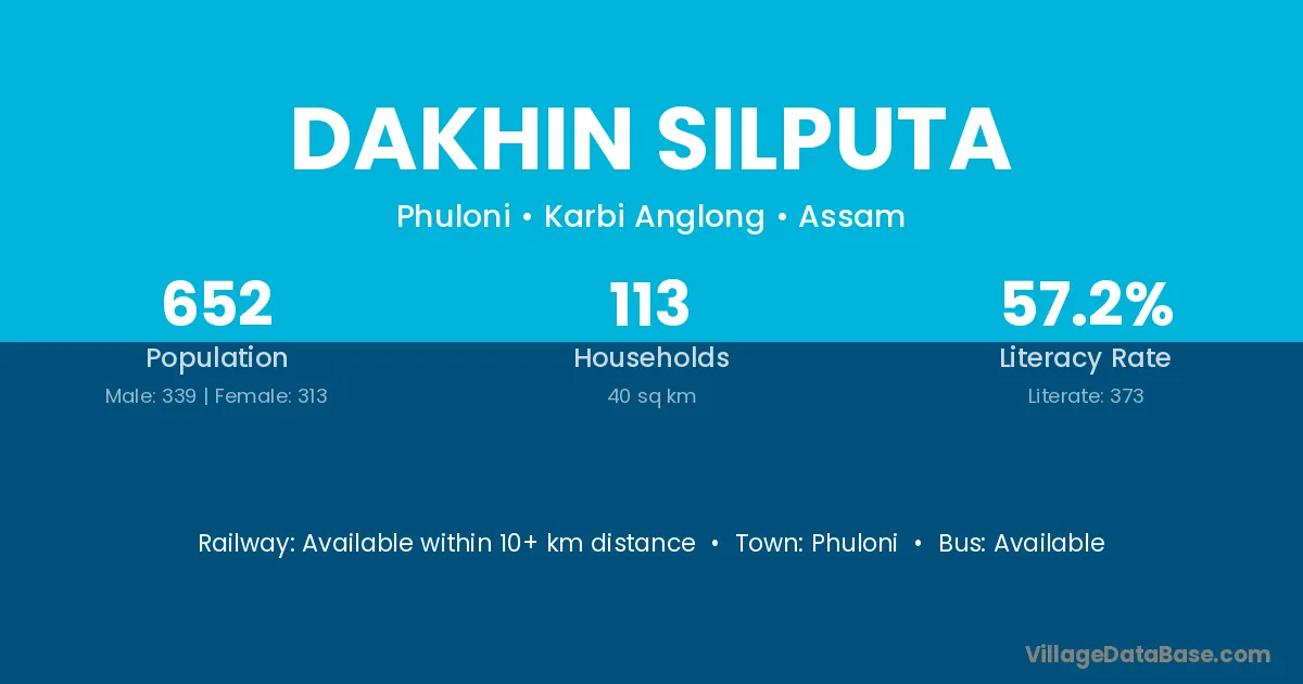 Dakhin Silputa village has a total population of 652 people, of which 339 are males and 313 are females.