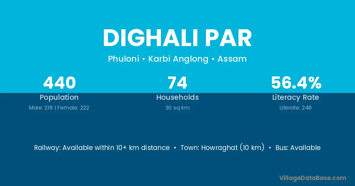 Dighali Par village has a total population of 440 people, of which 218 are males and 222 are females.