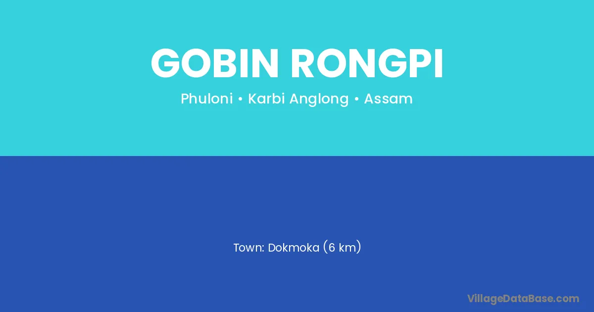 Dokmoka (6 km) is the nearest town to Gobin Rongpi village for major economic activities and is located approximately 6 km away.