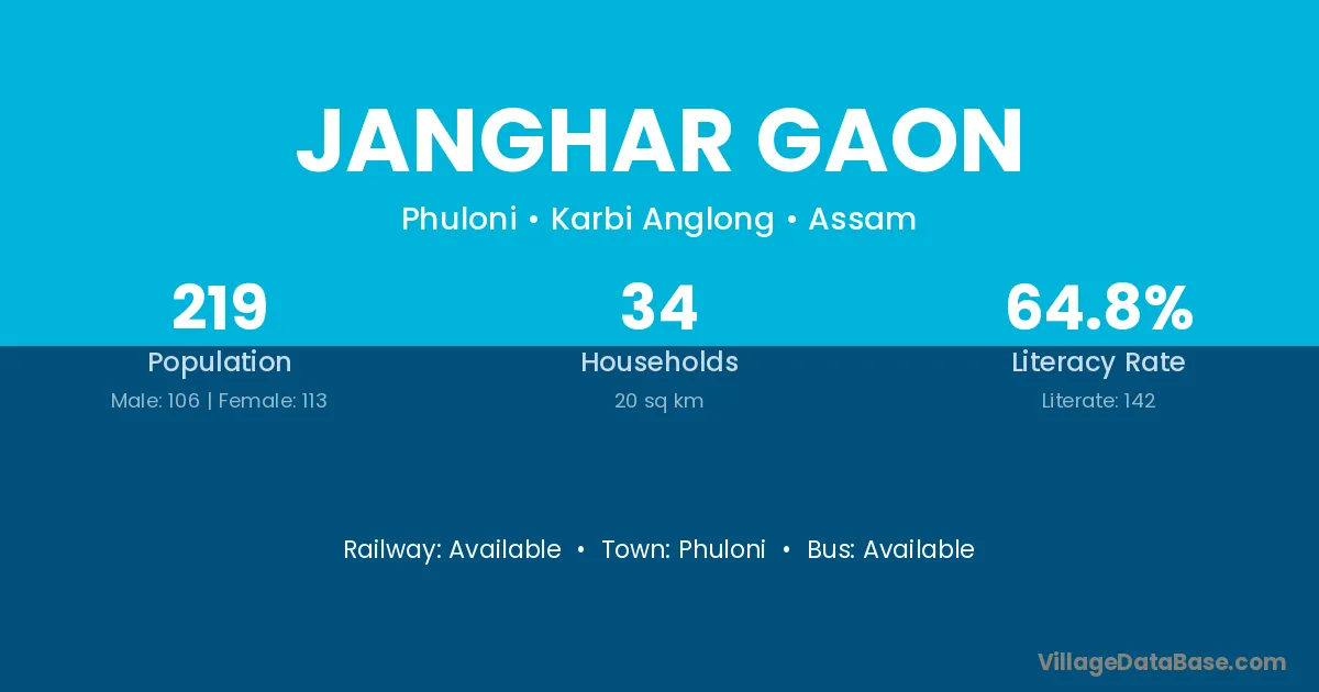 Janghar Gaon village has a total population of 219 people, of which 106 are males and 113 are females.