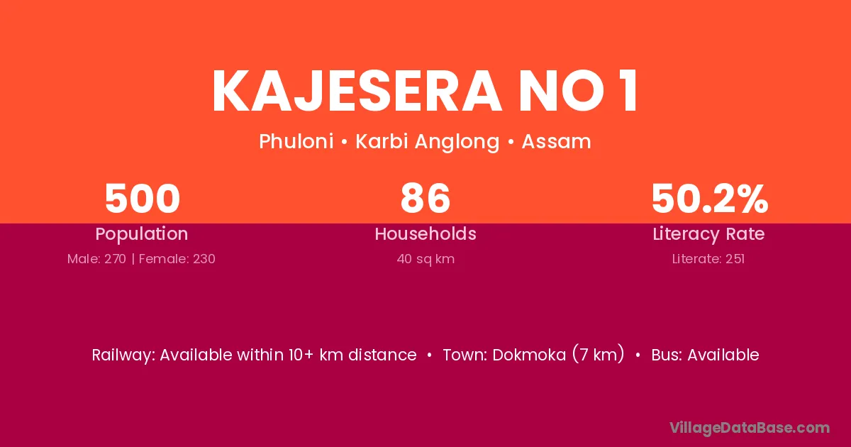 Dokmoka (7 km) is the nearest town to Kajesera No 1 village for major economic activities and is located approximately 7 km away.