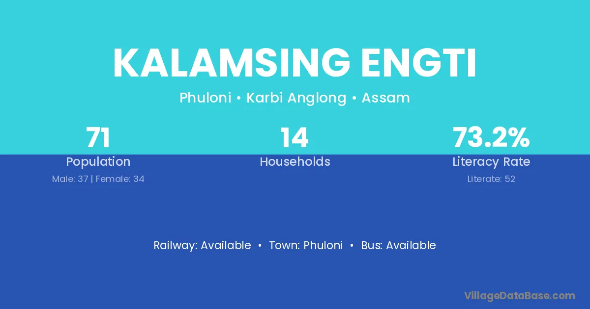 Kalamsing Engti village has a total population of 71 people, of which 37 are males and 34 are females.