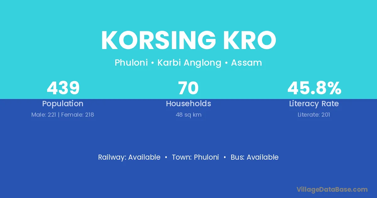 Korsing Kro village has a total population of 439 people, of which 221 are males and 218 are females.