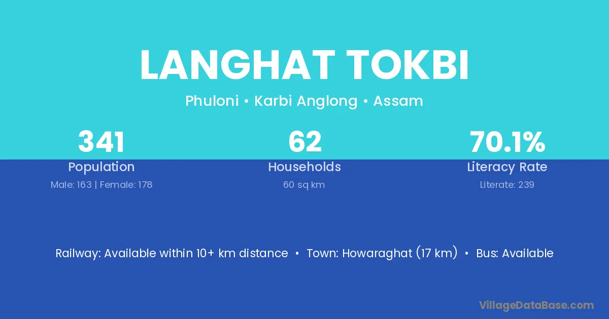 Langhat Tokbi village has a total population of 341 people, of which 163 are males and 178 are females.