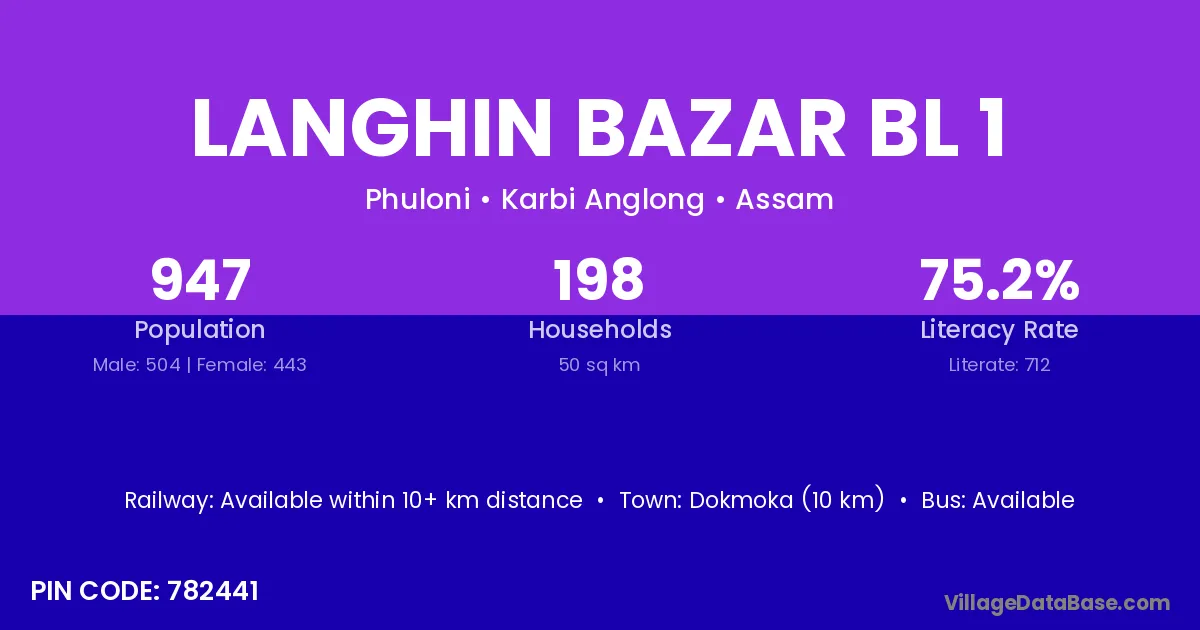 Langhin Bazar Bl 1 village has a total population of 947 people, of which 504 are males and 443 are females.