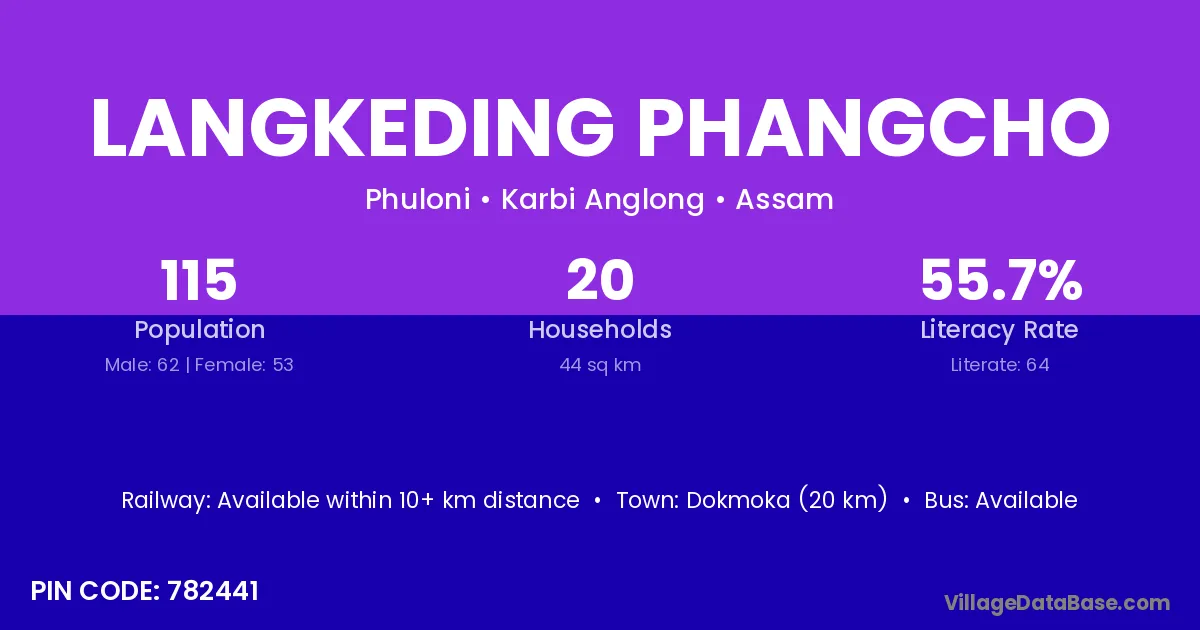Dokmoka (20 km) is the nearest town to Langkeding Phangcho village for major economic activities and is located approximately 20 km away.