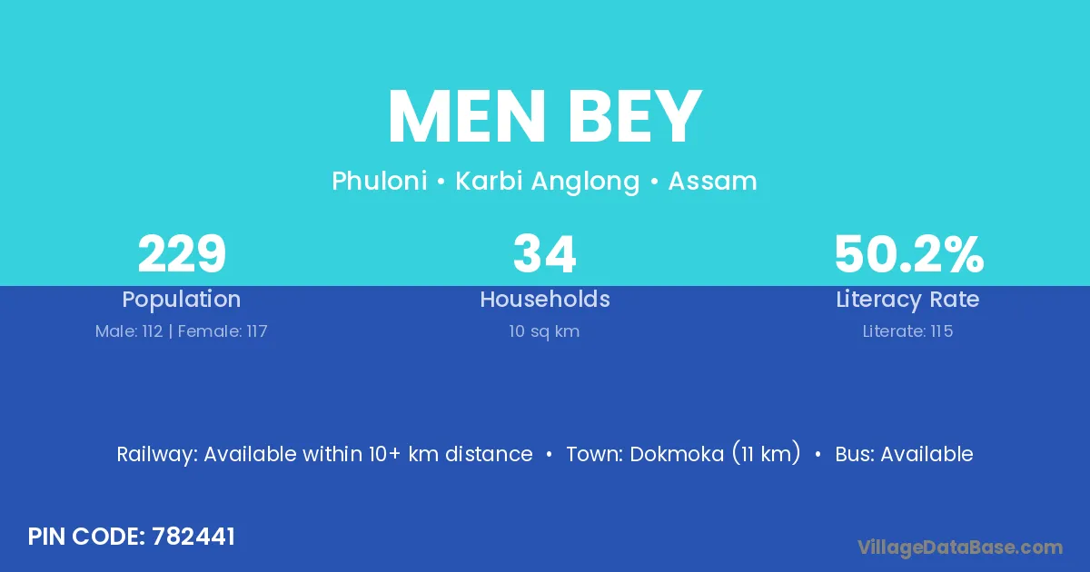 Men Bey village is located in the Phuloni Subdivision of the Karbi Anglong district in Assam .