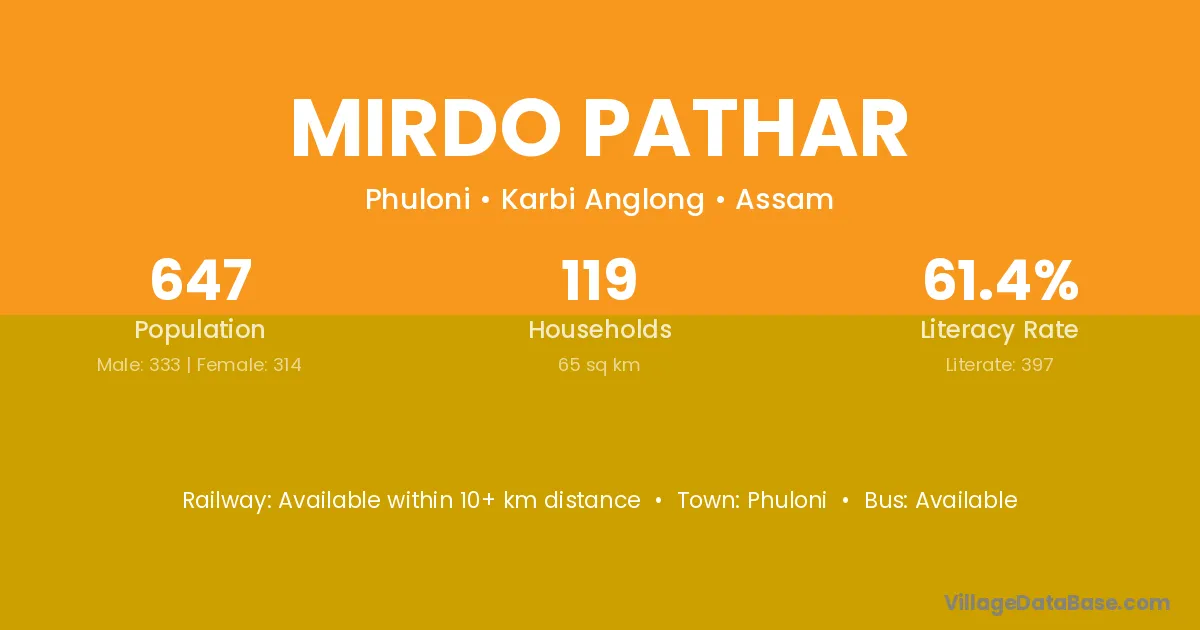 Mirdo Pathar village is located in the Phuloni Subdivision of the Karbi Anglong district in Assam .