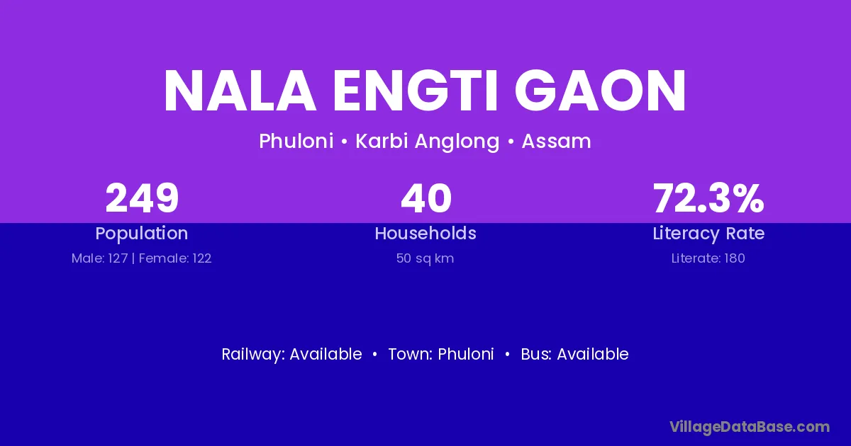 Nala Engti Gaon village has a total population of 249 people, of which 127 are males and 122 are females.