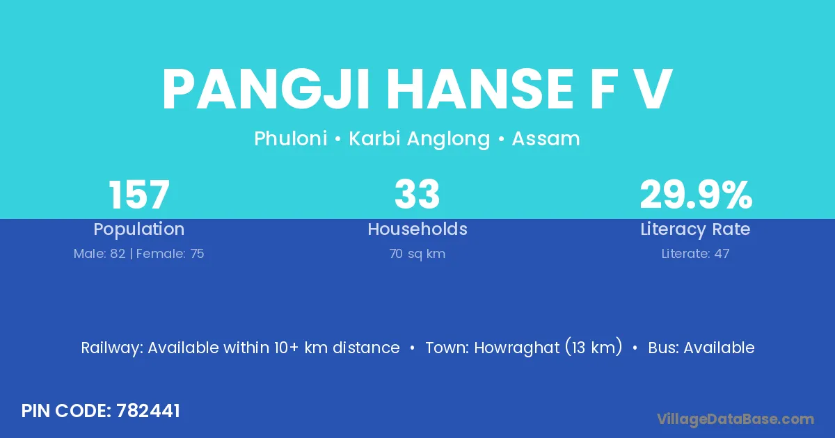 Howraghat (13 km) is the nearest town to Pangji Hanse F V village for major economic activities and is located approximately 13 km away.
