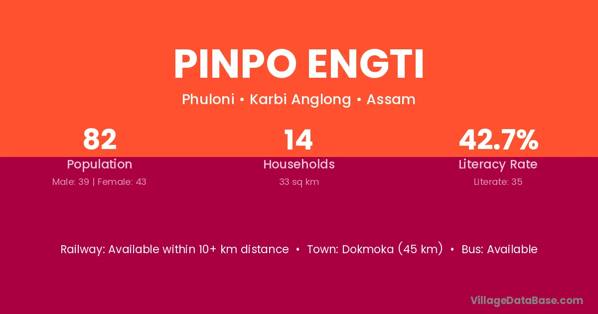 Pinpo Engti village has a total population of 82 people, of which 39 are males and 43 are females.