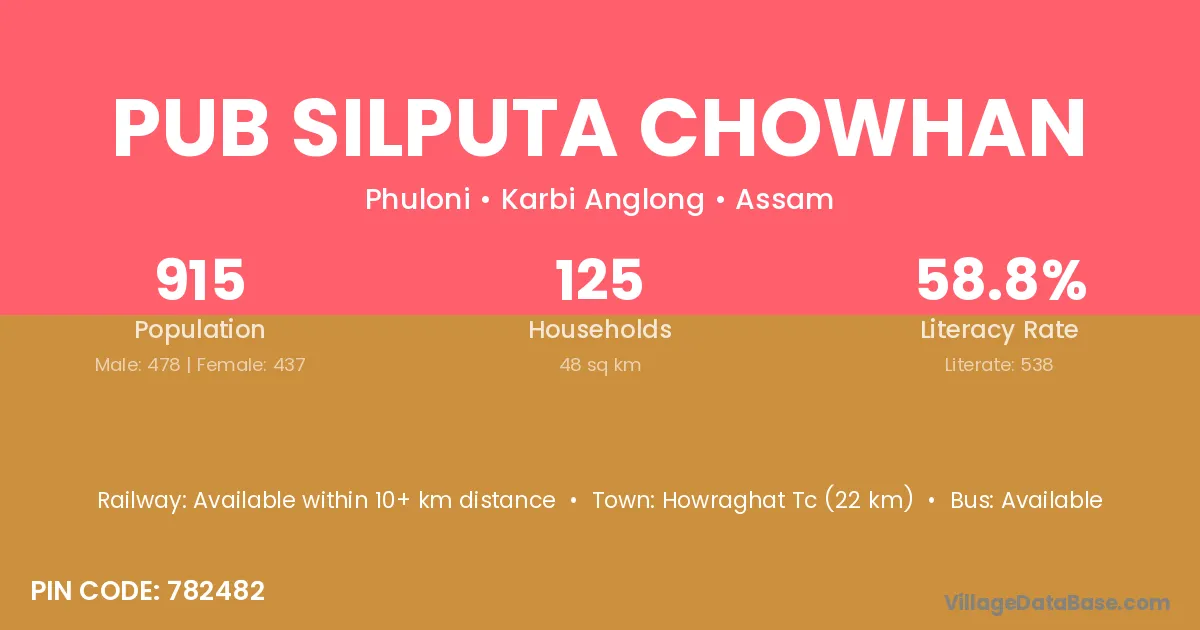 Pub Silputa Chowhan village has a total population of 915 people, of which 478 are males and 437 are females.