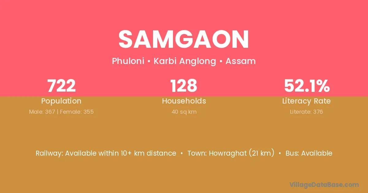 Samgaon village is located in the Phuloni Subdivision of the Karbi Anglong district in Assam .