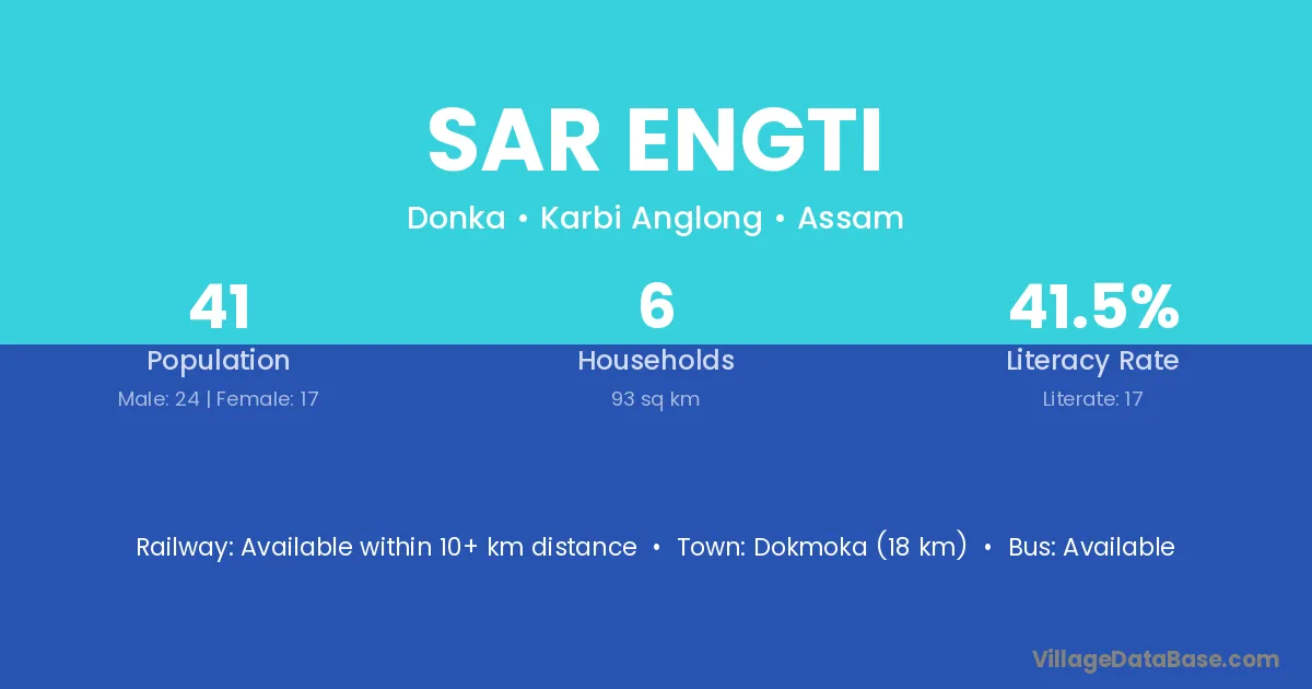 Sar Engti village has a total population of 202 people, of which 108 are males and 94 are females.
