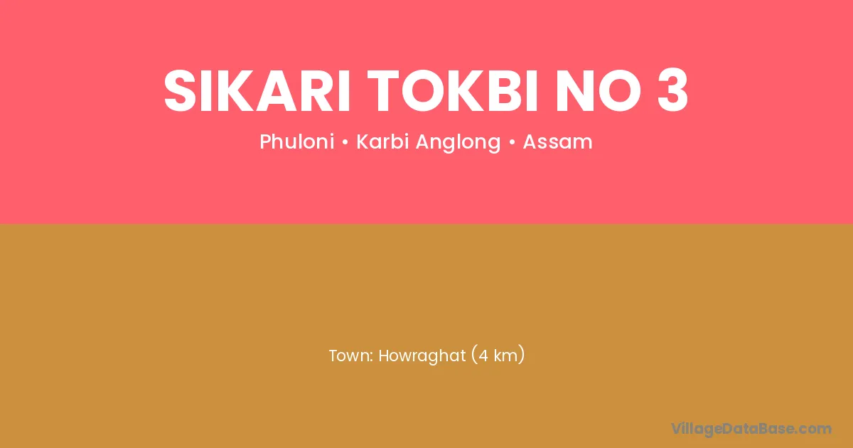 Howraghat (4 km) is the nearest town to Sikari Tokbi No 3 village for major economic activities and is located approximately 4 km away.