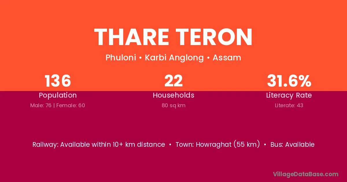 Thare Teron village has a total population of 136 people, of which 76 are males and 60 are females.