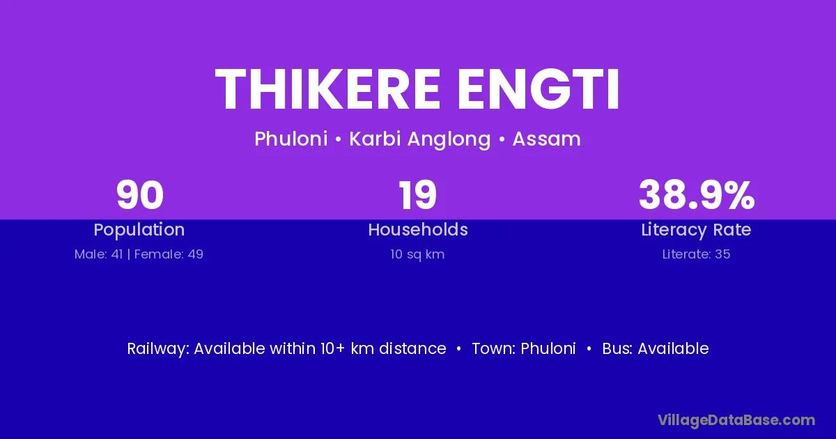 Thikere Engti village has a total population of 90 people, of which 41 are males and 49 are females.