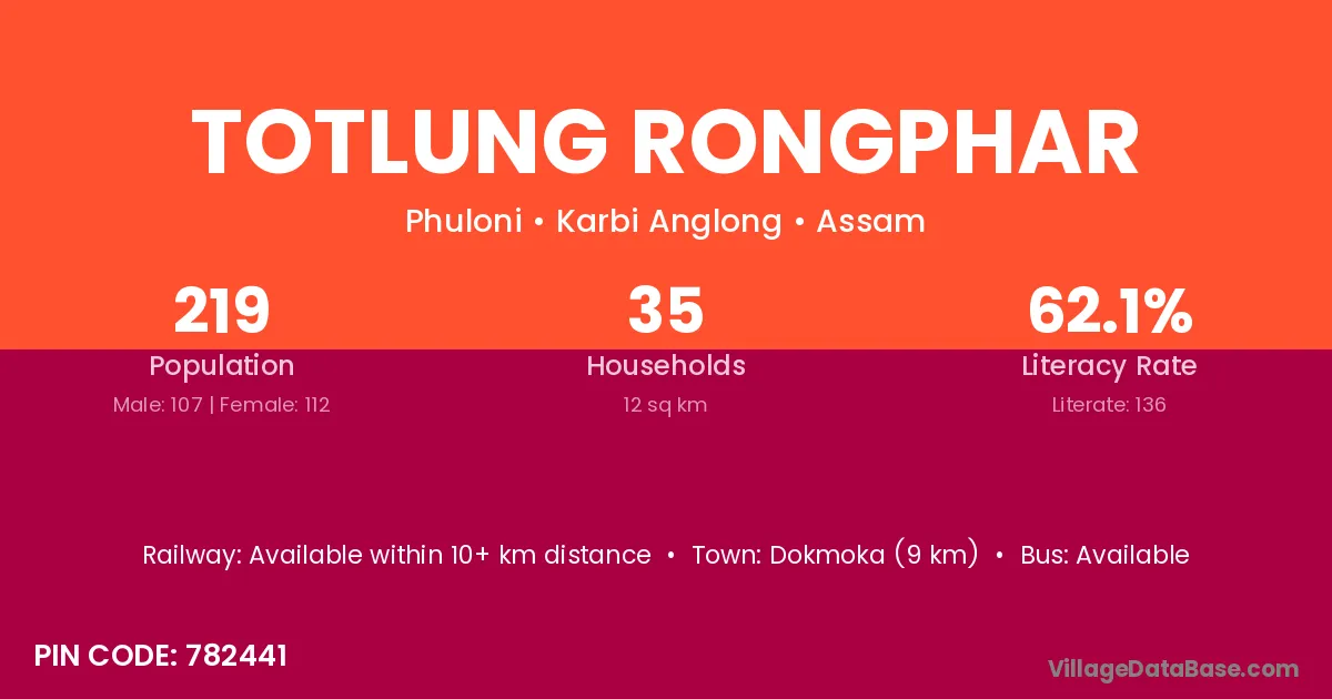 Totlung Rongphar village is located in the Phuloni Subdivision of the Karbi Anglong district in Assam .