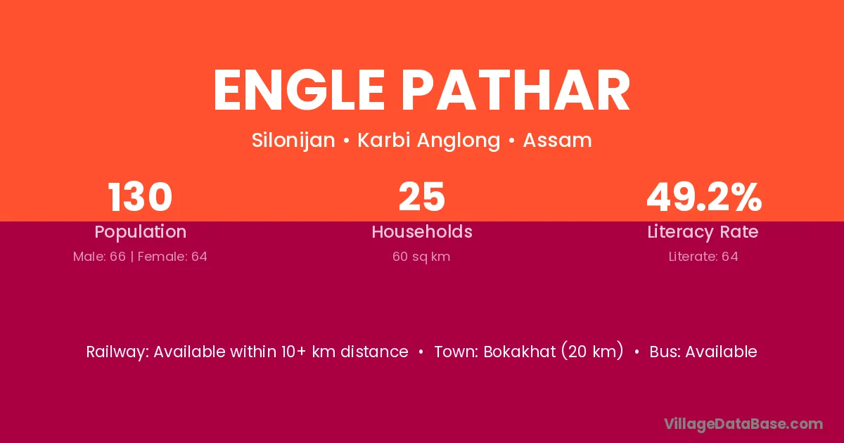 Bokakhat (20 km) is the nearest town to Engle Pathar village for major economic activities and is located approximately 20 km away.
