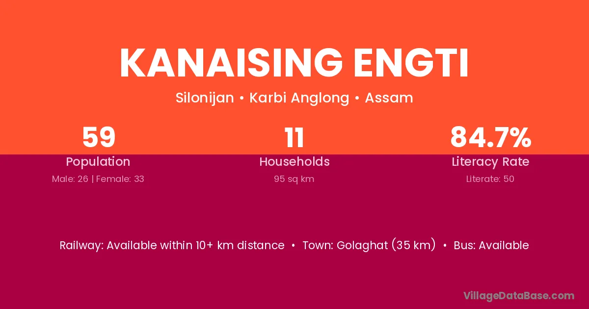 Kanaising Engti village has a total population of 59 people, of which 26 are males and 33 are females.