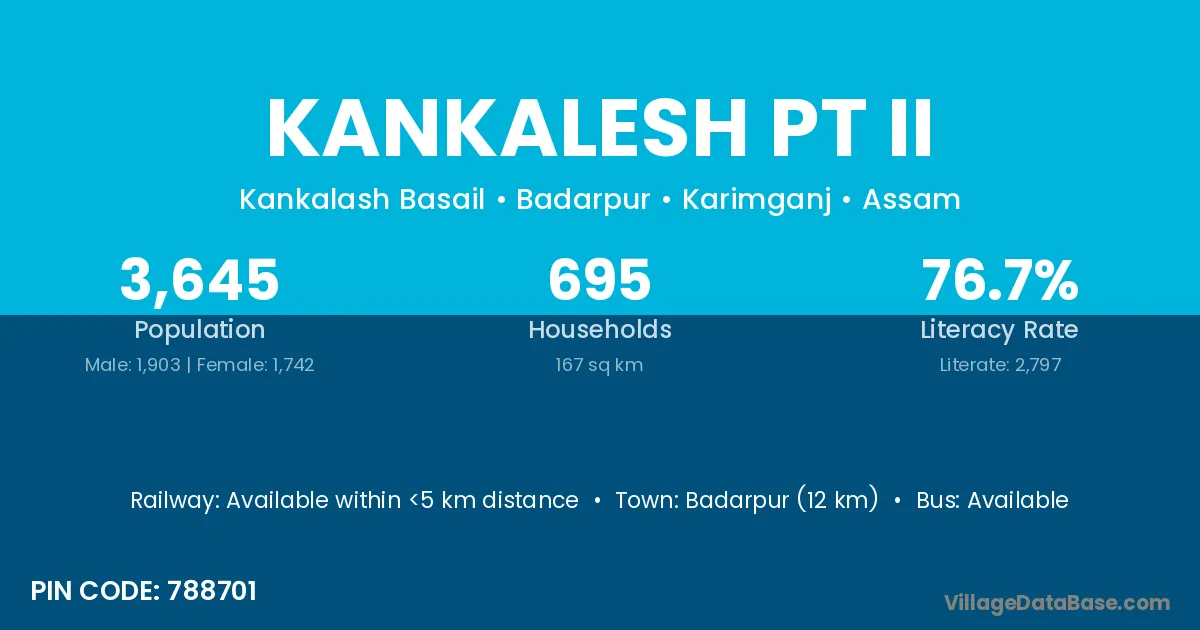 Badarpur (12 km) is the nearest town to Kankalesh Pt Ii village for major economic activities and is located approximately 12 km away.