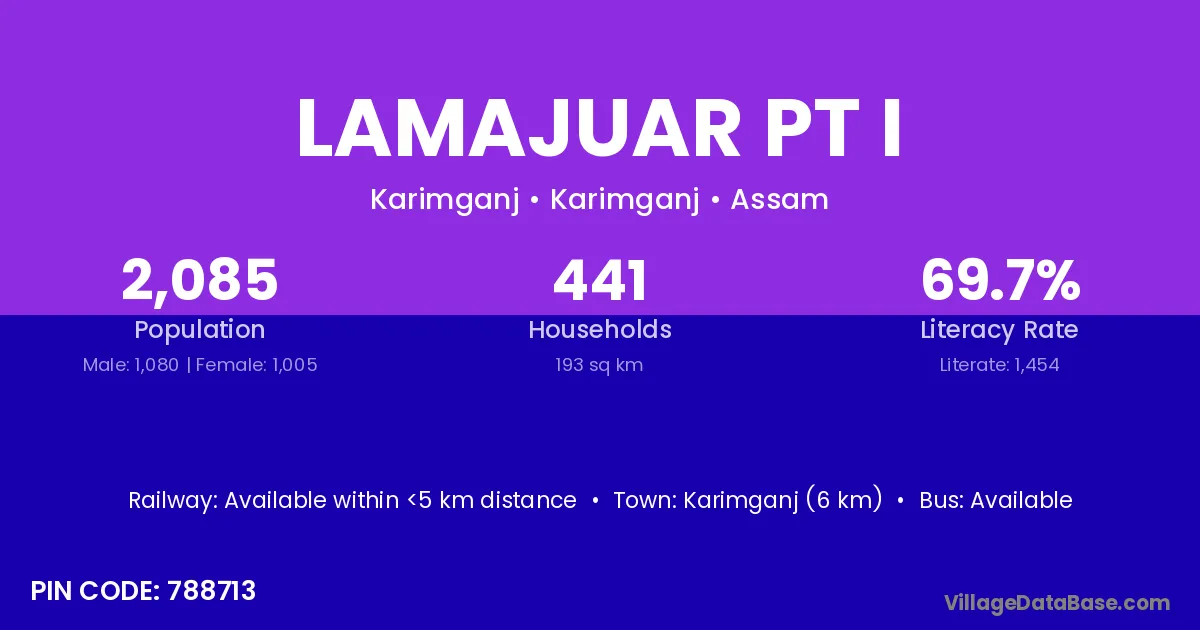 Karimganj (10 km) is the nearest town to Lamajuar Pt I village for major economic activities and is located approximately 10 km away.
