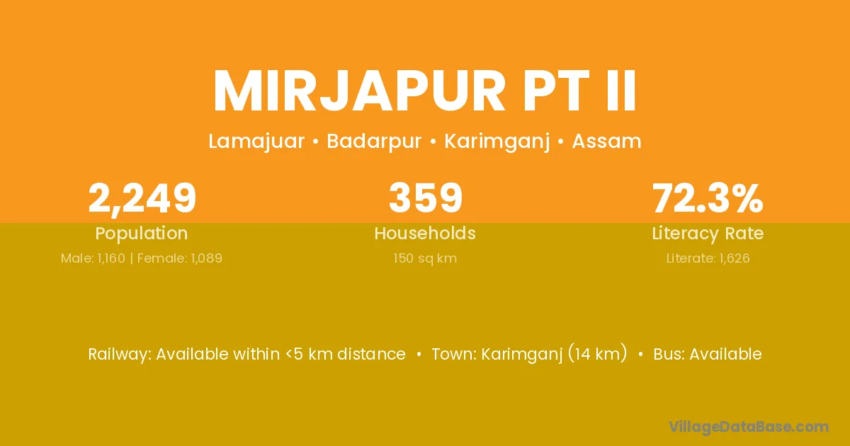 Karimganj (14 km) is the nearest town to Mirjapur Pt Ii village for major economic activities and is located approximately 14 km away.
