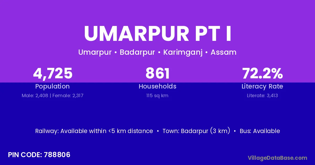 Badarpur (3 km) is the nearest town to Umarpur Pt I village for major economic activities and is located approximately 3 km away.